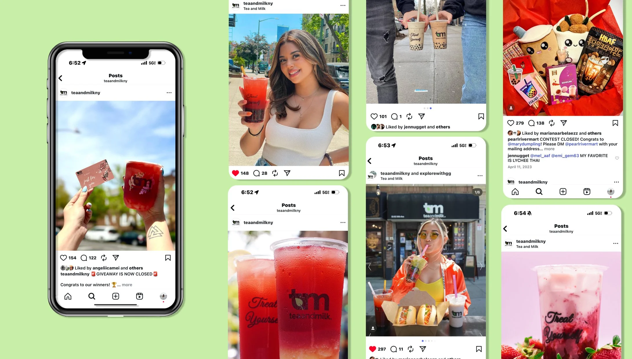 For Tea & Milk’s Bay Ridge grand opening (July 2023), I developed a social media strategy to drive local awareness, increase store traffic, and boost engagement. Using event footage, I created a content plan built around Reels, Stories, and carousels with clear content pillars: product features, community highlights, behind-the-scenes, and user-generated content.